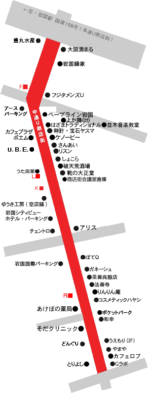中通り商店街の空き店舗マップ (2025年2月現在)