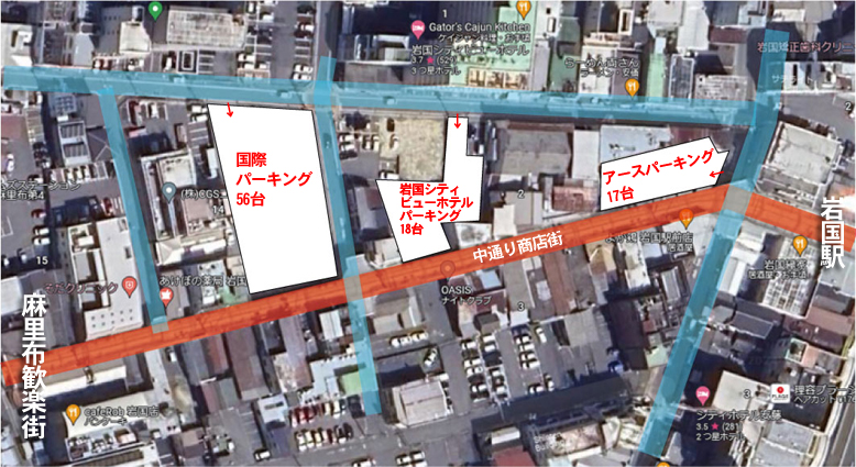 ※いずれも「岩国まちなかパーキング共通駐車サービス券」がご利用頂けます。