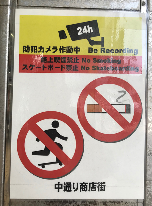 商店街では路上禁煙・スケボー禁止