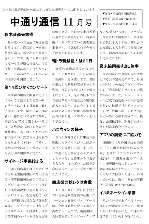 中通り商店街の各店へ配布している月刊新聞です。[PDF版]