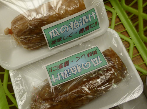 ウリの粕漬け。たくあん。しその葉寿司。