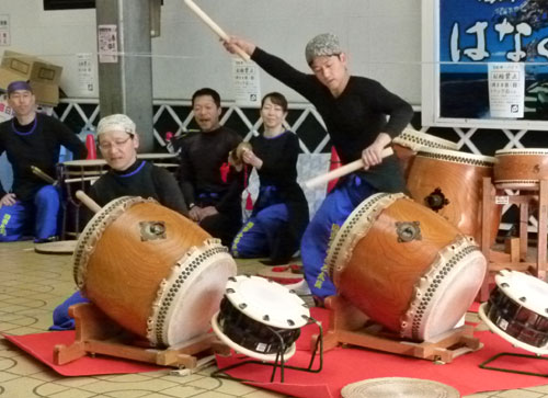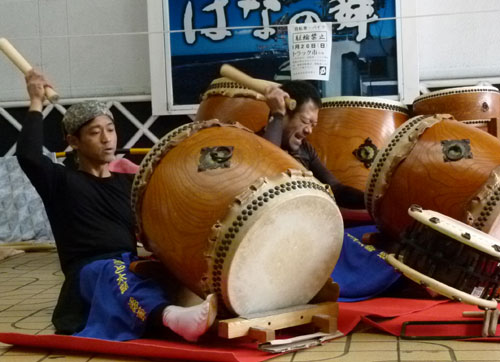 また中通り商店街が展開している「旬ごよみ」では、お馴染みの”勘場猪鍋”を採り上げ、アツアツ、ホクホクの猪鍋を堪能。さらには、周東ふるさと太鼓の演舞も迫力満点。気温が低く寒い一日だったにもかかわらず、大変大勢の人出で賑わった中通り商店街でした。