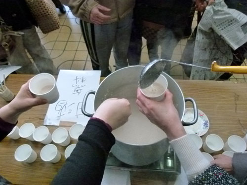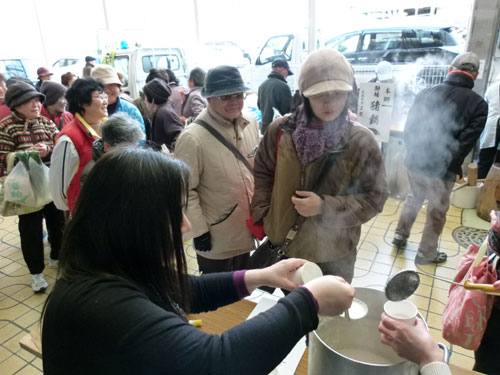 旬ごよみ酒粕コーナーでは、午前10時から甘酒のふるまいでスタート。