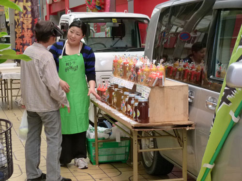 軽トラ新鮮組!のコーナーも人気上々。はちみつ屋さんも元気いっぱい。