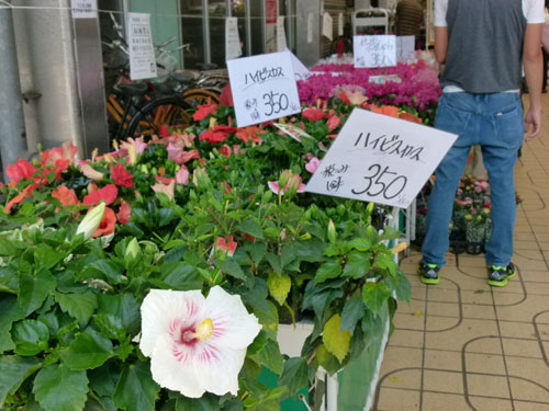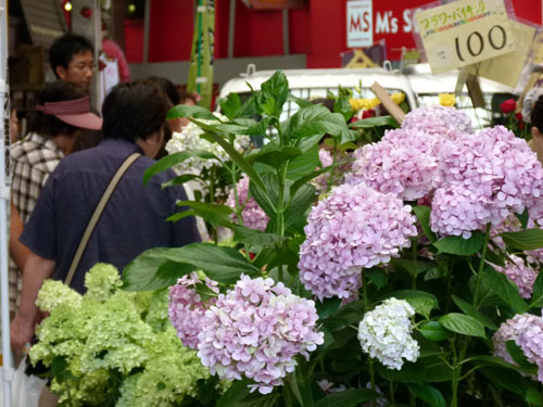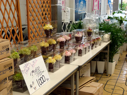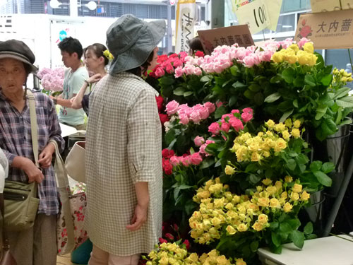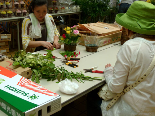 午前10時。スタートと同時に、さっそく花コーナーへ人だかり。