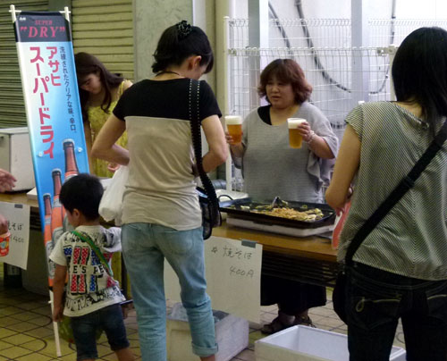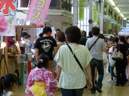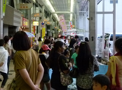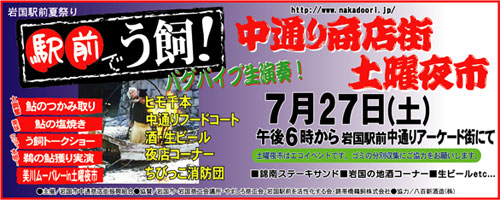 猛暑の中、中通り商店街では恒例の「土曜夜市・駅前でウカイ!」を開催しました。