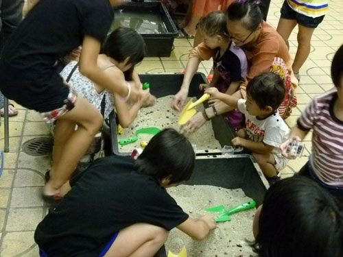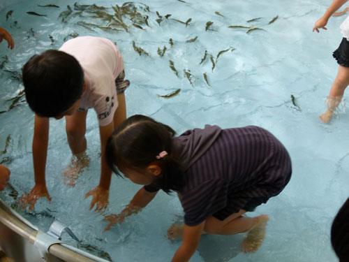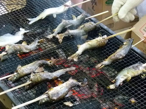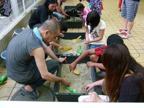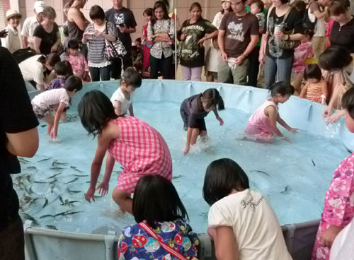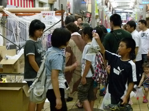 そのほか、人気絶頂「鮎のつかみ取り」、中通り名物「ヒモ千本」。また今年も美川町のムーバレーが土曜夜市に参加して、鉱石探しなどで人気を集めていました。