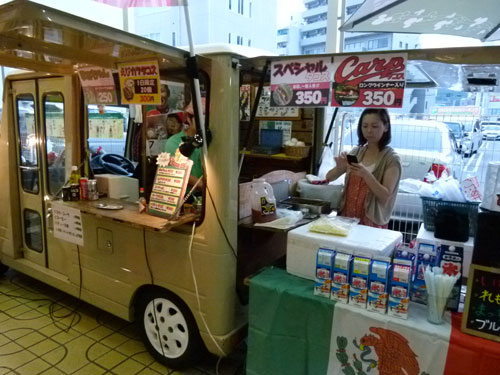 中通りフードコートでは商店街から「ととや」、「ガネーシュ」などが出店。岩国市内からは「レストラン錦南」や「三木屋」、「ほまれ座」、「タコスまーちゃん」などが駆けつけていただき、たくさんのお客さまが名物料理に舌鼓をうっていました。