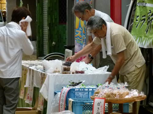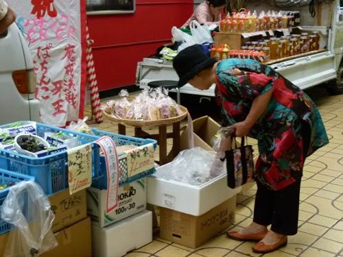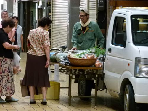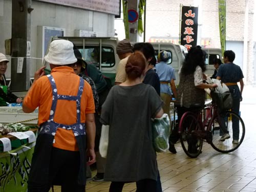 軽トラ新鮮組!はいつものメンバーで大賑わい。残暑の中、季節の野菜や産品がトラックの荷台へ並びました。