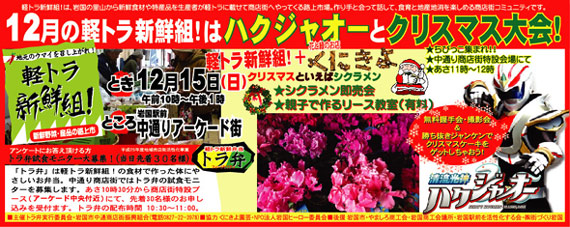 花と緑のくにきよ様、岩国ヒーロー委員会様のご協力で、今年ラストの軽トラ新鮮組!は、クリスマス大会となりました。