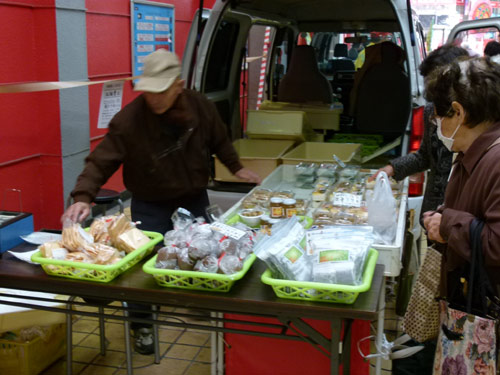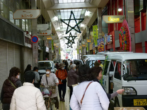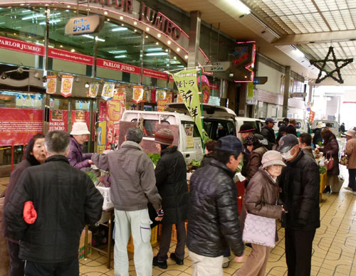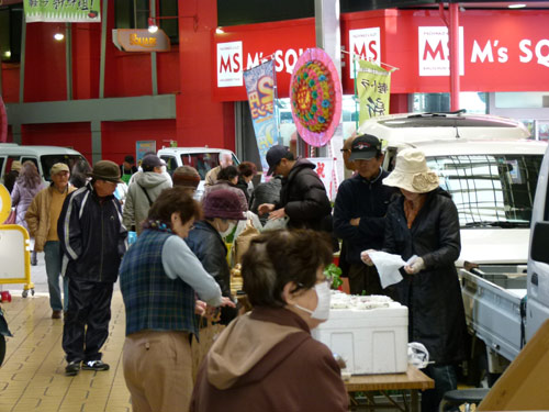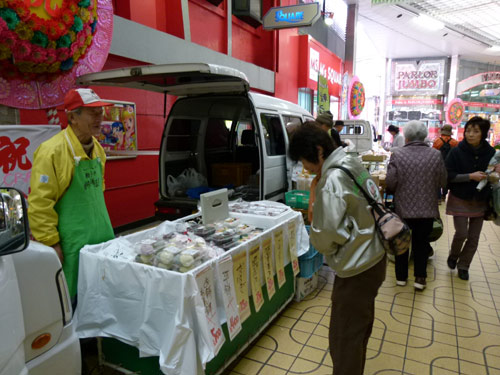 トラ弁試食モニターに、ハクジャオーのジャンケン大会、くにきよのシクラメン即売会、さらには林研女性部のみなさん、これらに加えて軽トラ新鮮組メンバーは、今期最多の23台が出店する大賑わい。アーケード街の端から端まで、軽トラと来場のお客様で埋め尽くされました。