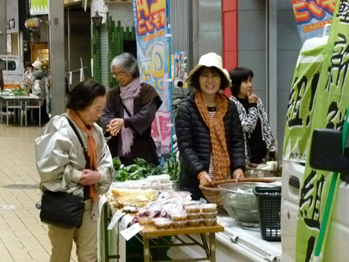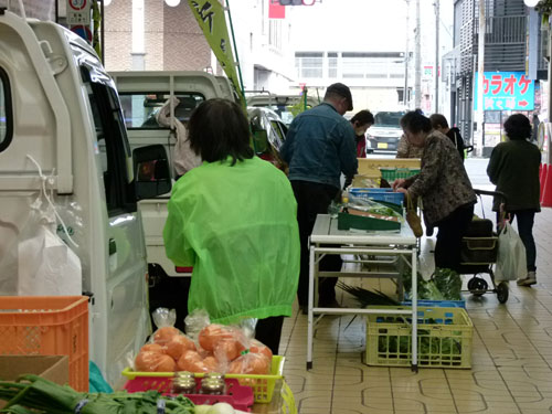 今回は軽トラ新鮮組!の通常開催。広告も出せませんでしたが、毎月第三日曜日を合い言葉にたくさんのお客さまに集まっていただきました。名物の勘場猪鍋も今期最終回。また新メンバーとして、くにきよ園芸さんがお花に加えて野菜をもって参戦。賑やかな一日になりました。