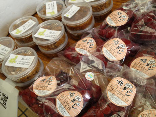 梅干しと水蕗。アクの少ない美味なるフキ。