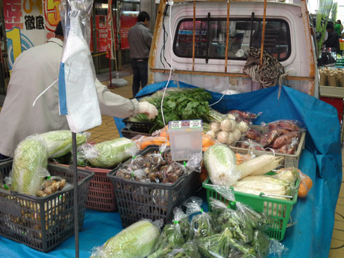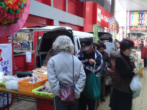 軽トラ新鮮組!名物、どれでも1袋100円のブースもあります。^^v
