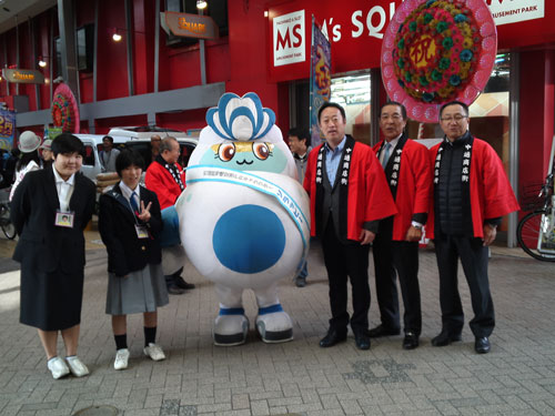 今回は地産地消を推進する「バイいわくにキャンペーン」も軽トラ新鮮組!の会場で行われ、そらっぴーや福田市長さんも来場され、賑やかに推進キャンペーンを繰り広げました。