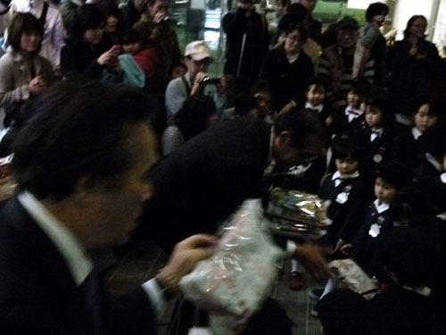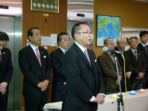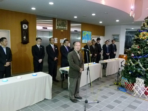 岩国駅前を活性化する会の松川会長の挨拶で開会。ご来賓の方々が点灯スイッチをオン。