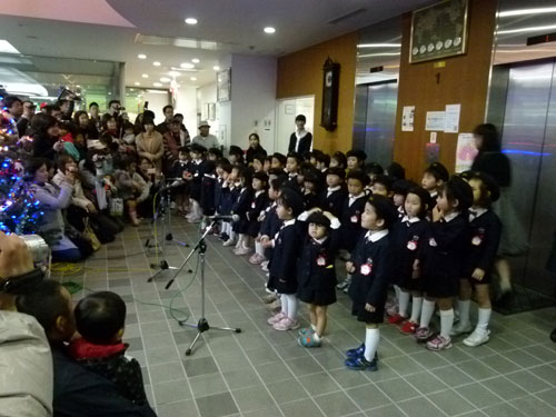 聖母幼稚園の園児さんたちがクリスマスキャロルを合唱してくださいました。