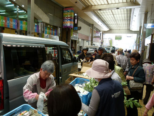 作物の入れ替え時期にあたる今回は軽トラ8台だけでしたが、品質はピカイチ。試食品も出されていたり、軽トラ新鮮組!の進化形が随所に見られる開催でした。
