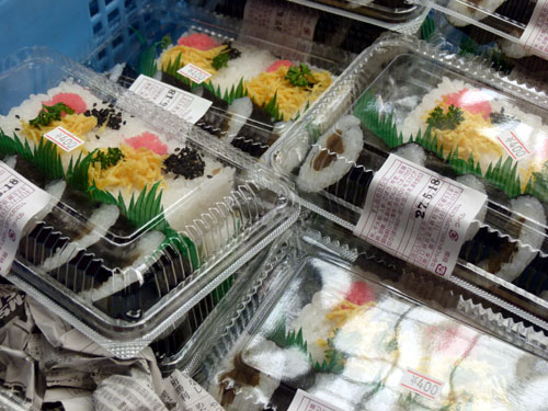 また各種のお寿司や御飯ものも人気の中心。巻きずし、いなり寿司、わさびの押し寿司など、どれも美味しそうです。^^