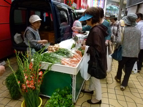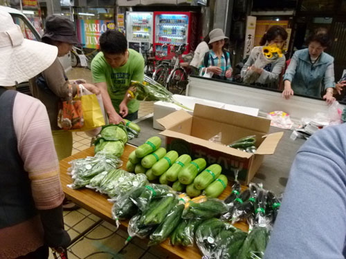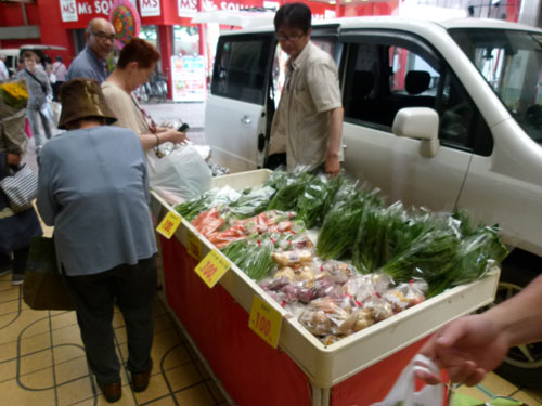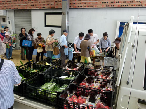 今回の軽トラ新鮮組!は、夏野菜の早いものが並び、軽トラも総勢13台。待ちかまえた大勢のお客さまで賑わいました。