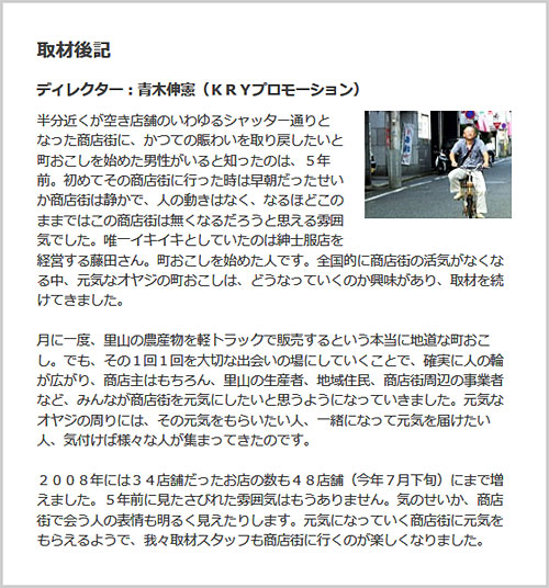 番組名は【日本のチカラ】その「#16・オヤジと笑うシャッター通り」と題して、全国各地のローカル放送局で放映されます。(各地域によって放送日時が異なります。)