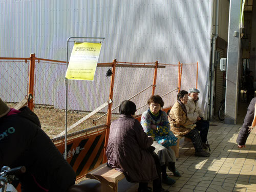また、中通り商店街社会実験事業の一環として設置した、里山のベンチも好評。多くのお客さまが、やわらかい木の温もりを満喫していました。