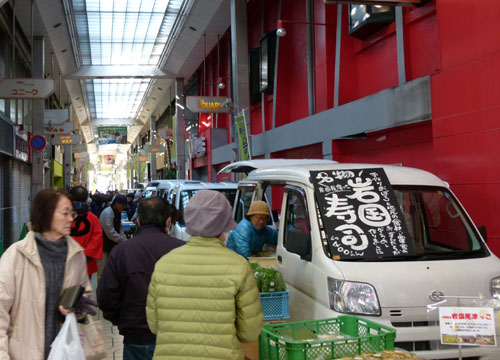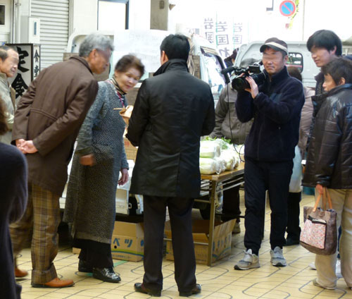 今回の軽トラ市には、奥出雲町商工会の方々が視察に来られ、またTBSテレビ「がっちりマンデー!!」の取材も飛び込んで、商店街は慌ただしい開催となりました。インタビューや質問などにお応えいただいたお客さまには、お手数をありがとうございました。 m(_ _)m