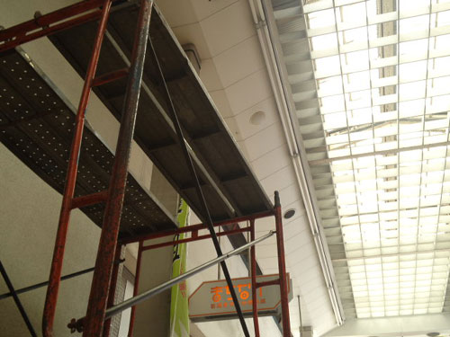 梅雨を控えた5月下旬、アーケード照明器具や路面の一斉清掃を行いました。汗ばむ一日でしたが、お客さまに気持ちよく商店街で過ごしていただくために、商店主らが総出で清掃作業にあたりました。ご意見などお気付きのことがありましたら、こちらのフォームからお寄せください。