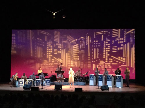 当コンサートの開催を通じて、市内外の来場者に対し本場アメリカのビッグバンドジャズを皆様に楽しんでいただくとともに、岩国駅前地区や商店街における音楽イベントを通じた賑わいを創出し、同時にリーダー的人材の育成を図ることで、中心市街地の活性化に資する友好国際交流の場を持つことを目的に開催しました。当日は700名を超える観衆のみなさんと一体になって音楽を楽しむことができました。