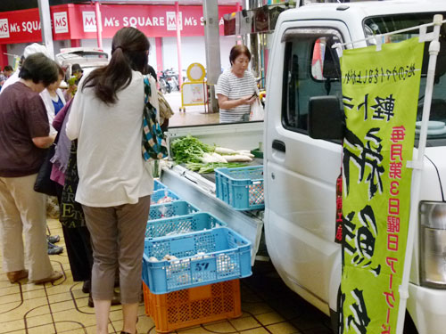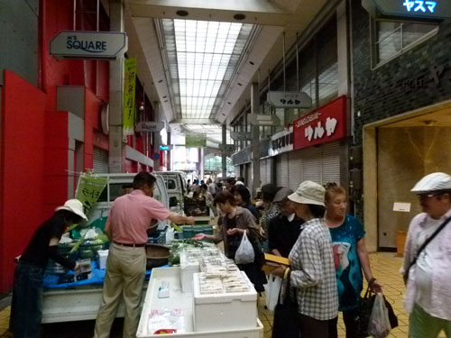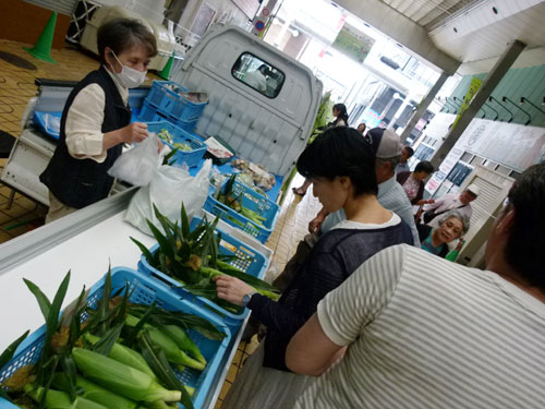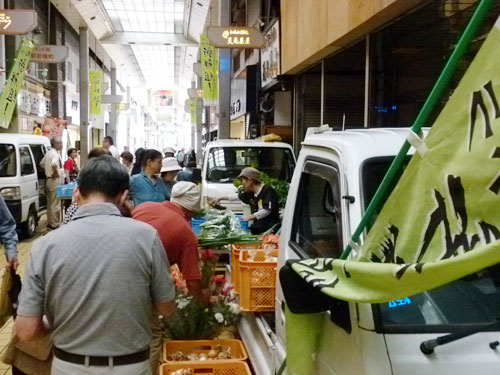 夏野菜を満載にしてやってきた軽トラ新鮮組!が中通り商店街を埋め尽くしました。\(^o^)/