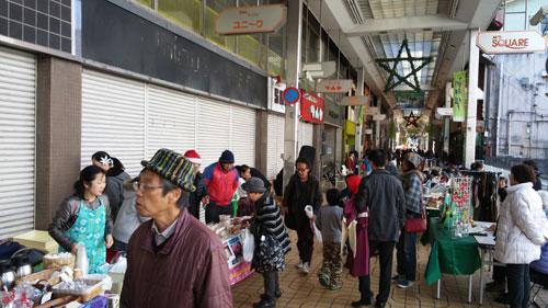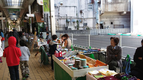 と題して中通り商店街に32組の出店者が路上市を繰り広げました。いつもとは違う商店街の風景に、街行く人々や店主もびっくり。賑やかな一日を過ごしました。