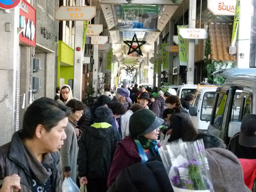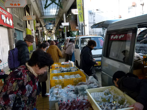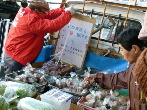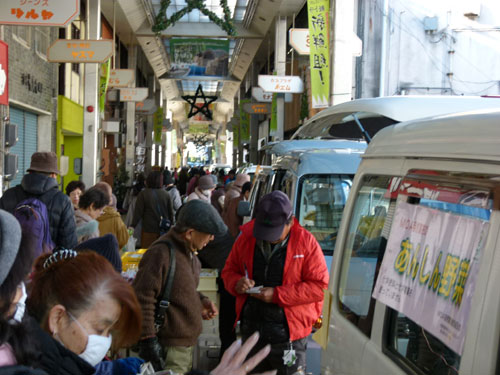 クリスマス&お正月を控えた12月の軽トラ新鮮組!は、今期最多の軽トラ22台が参加。歳末の慌ただしい中でしたが、お正月用品なども新鮮格安に販売されるとあって、お客さまも大賑わい。午前中にほとんどの軽トラが売り切れとなりました。