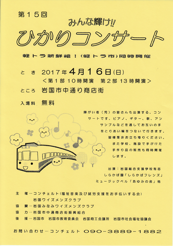 第15回開催となる「ひかりコンサート」は障がい者と健常者の分け隔てなく音楽で楽しむ一日。中通り商店街で開催するようになって、はや2年が過ぎました。