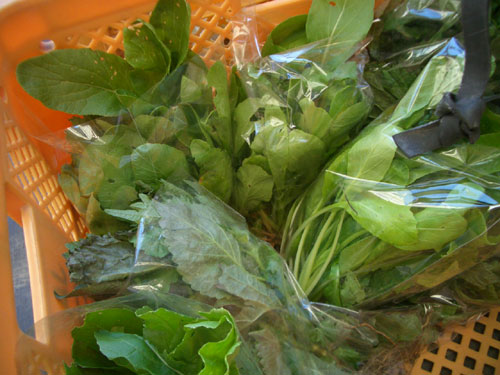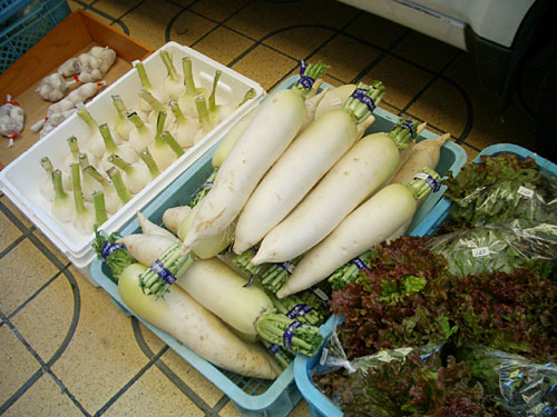 元気一杯の新鮮野菜。ぎんなんも美味しそう。