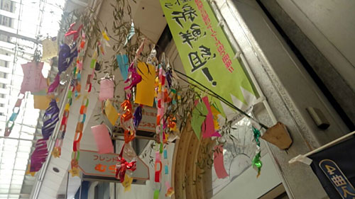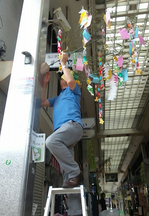 商店街の七夕飾りスタート