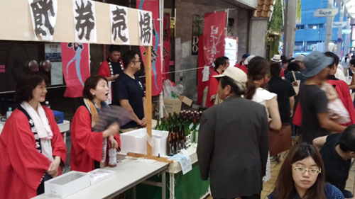 また会場では「真夏の地酒を楽しむミニ酒祭」のコーナーも設置。蔵元のアドバイスに耳を傾けながら、岩国三蔵の銘酒をききくらべ。