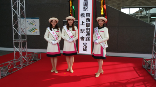 関係者およそ100名が集い、福田良彦岩国市長の挨拶などでオープニングセレモニーが開催されました。岩国の玄関口となる駅舎は、上下エスカレーターを備えるなど、近代的で安心・安全な駅舎としてスタート。東西自由通路によって街が繋がり、広く未来の可能性を感じる駅になりました。
