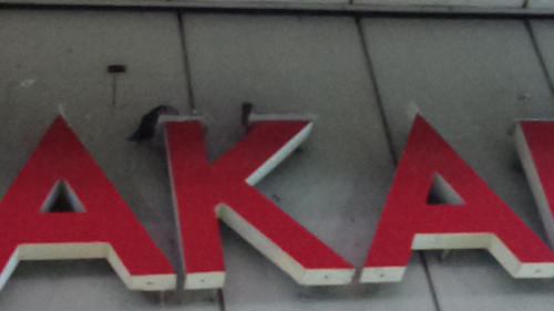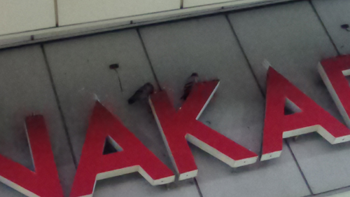 中通り商店街の駅側入口看板にハトが止まるようになりました。