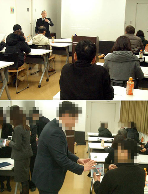 当日は商売人の目線で話す藤田理事長の講話でスタートし、いま話題の真っ直中にあるキャッシュレス決済業者「PayPay」の説明。実際の決済のシミュレーションを行い、売り場でどんな事が起こるか、商店主自身が体験しました。