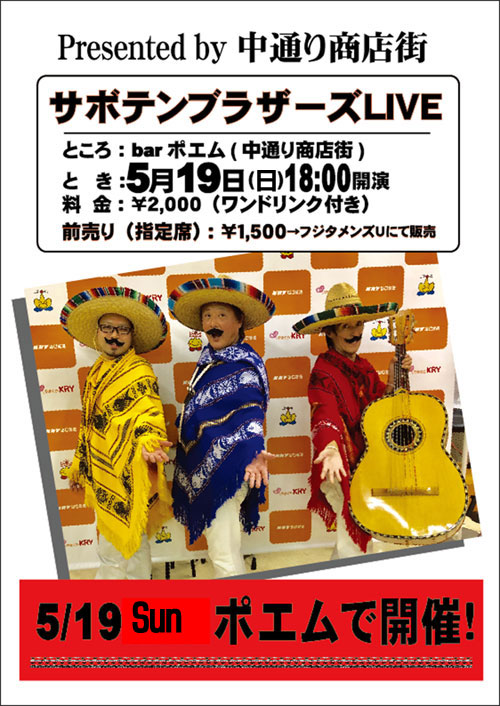 山口県警らの交通安全運動でも「あおり運転撲滅」をかかげて歌う人気のユニット、サボテンブラザーズが中通り商店街POEMでライブコンサートを開催。日本人だけでなく、アメリカ人も一緒になってノリノリのひとときを楽しみました。