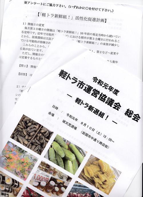 8月10日。軽トラ新鮮組!を運営する「軽トラ市運営協議会」の令和1年度通常総会が、破天荒酒場(中通り商店街)で開かれました。中通り商店街からも顧問、来賓としてお招きいただき、ころからの軽トラ新鮮組!について大きな夢を語り合いました。