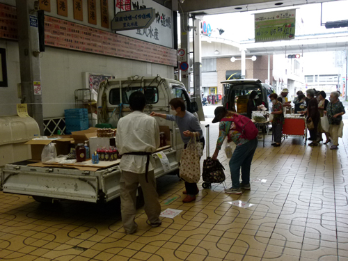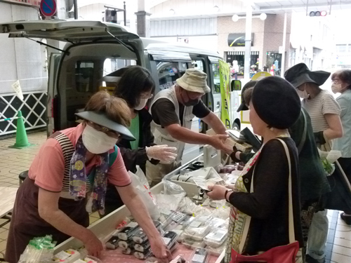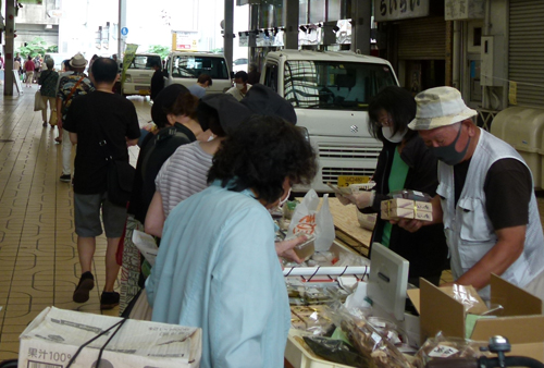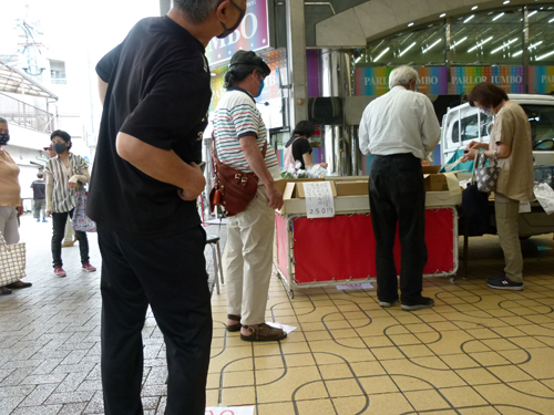 コロナ対策型・時短軽トラ新鮮組!を開催しました。ソーシャルディスタンス、マスク着用、消毒剤の設置、短時間の解散などを励行していただけるようご案内しました。今月開催ではプラスチックゴミ軽減を目指して、レジ袋が一律5円で有料化。新しい生活スタイルの軽トラ新鮮組!です。