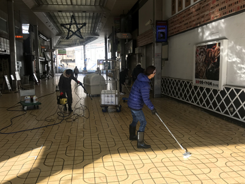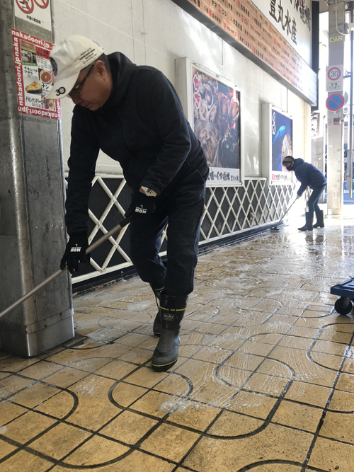 商店街の路面一斉清掃を行いました。心地よい街へ、どうぞ!