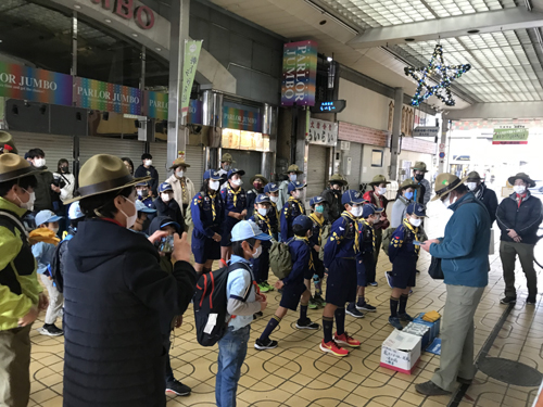 岩国1・4・5団ボーイスカウトが商店街で歳末助け合い募金活動