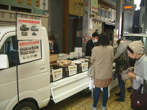 大雪に見舞われた中国地方でしたが、極寒の中で元気に軽トラ新鮮組!。山口県軽自動車協会のデモンスとレーション参加も。