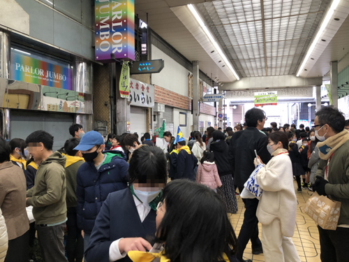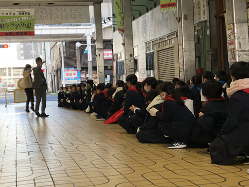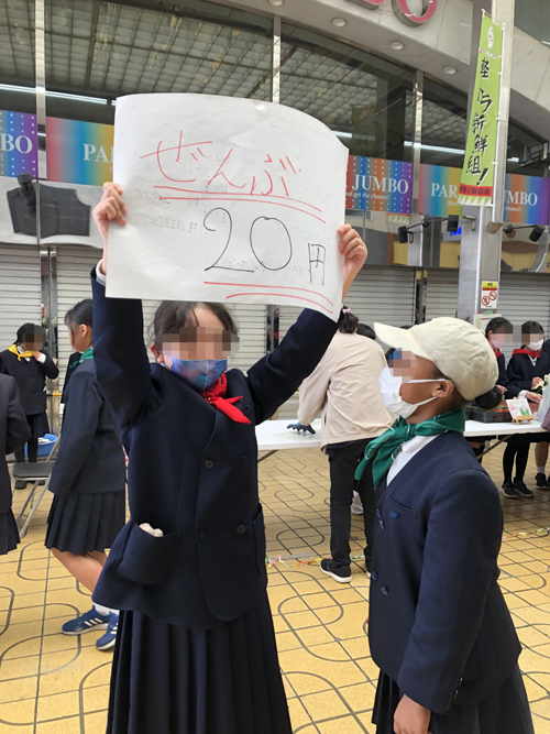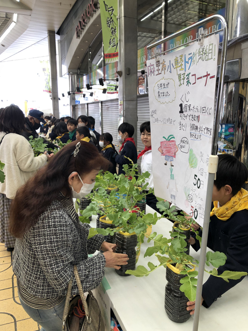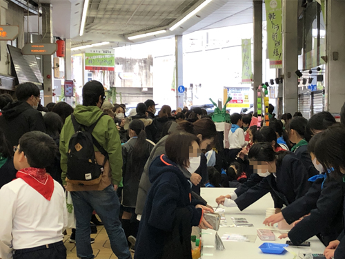 当日は130人の麻里布っ子の元気な声が商店街に響き渡りました。