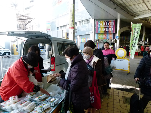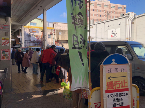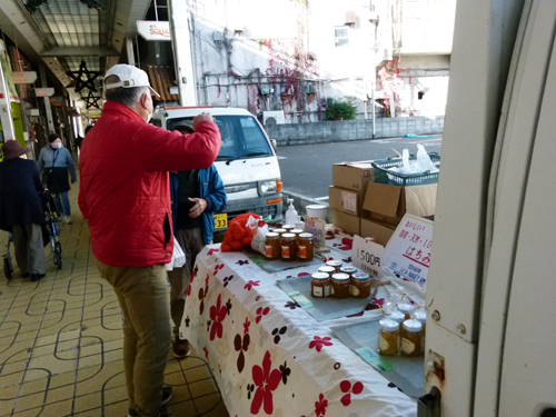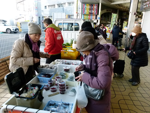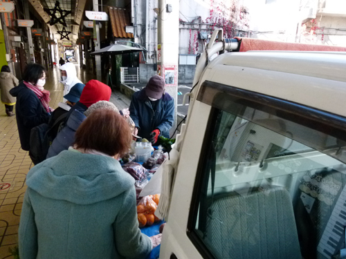 年内最後となった軽トラ新鮮組!は、10年に一度の寒波に見舞われてお客さんもまばら。アーケードとはいえ、寒さには勝てません。