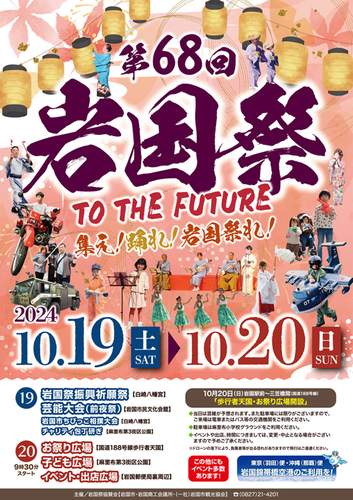 会2024年10月20日(日)は岩国最大のお祭り。今年は鳥取しゃんしゃん踊りも参加したフルスペック開催でした。