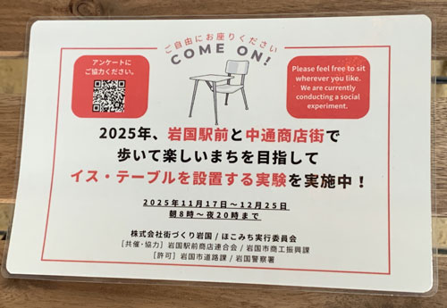 この事業は『株式会社街づくり岩国』が主幹し、商店街や駅前広場など、広く駅前の賑わいを創出する目的で、岩国市らと共に推進しています。11月17日からおよそ一ヶ月間の社会実証実験を経て、どのような形態やルールが当地に適しているか等を検証。岩国市など行政機関と協力して、来年4月の事業開始を目標にしています。